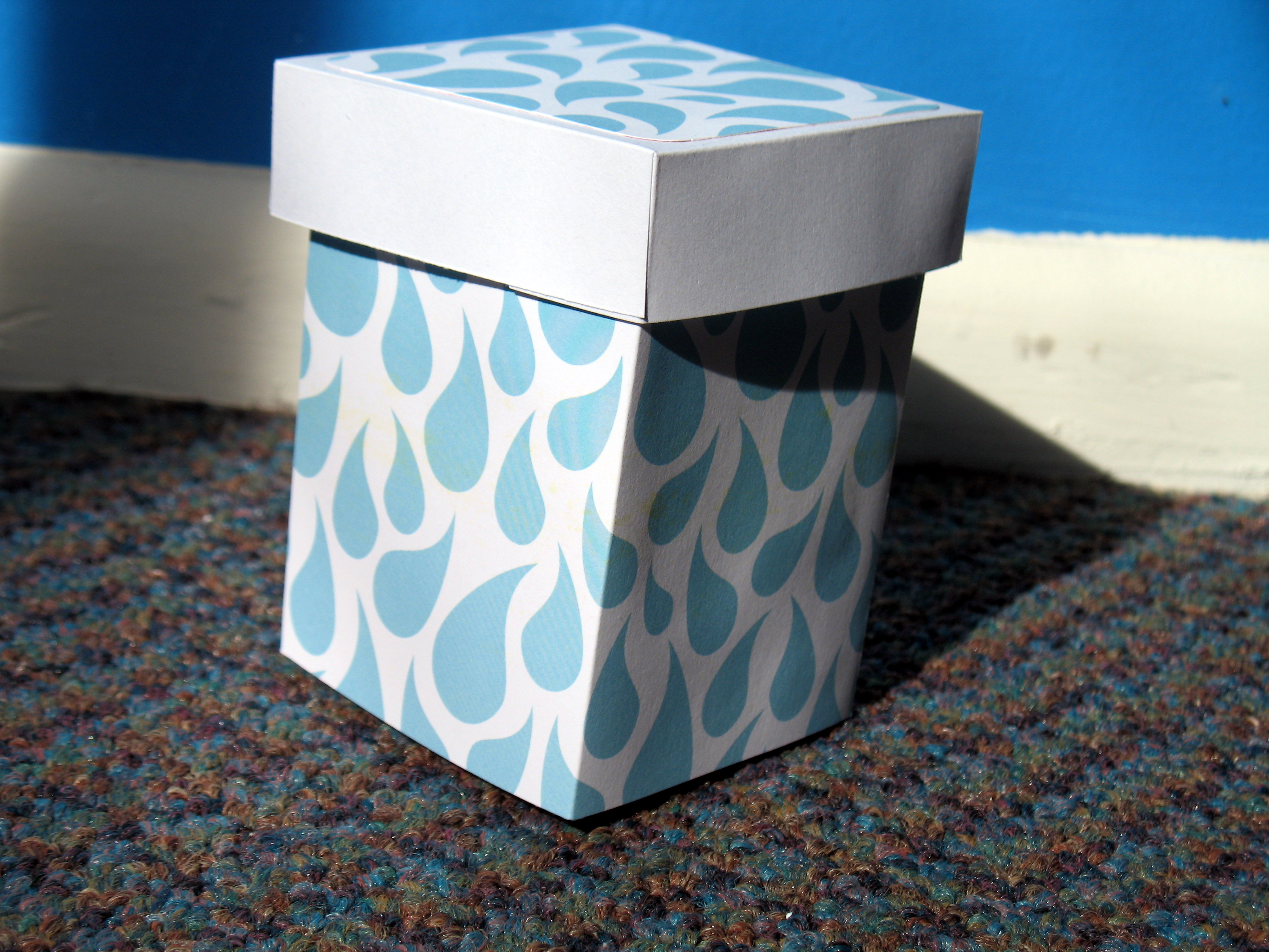 It’s a small box of drawers. Little drawers. It’s 3 in x 3 in x 4 in. And adorable. I found the paper today at Robert’s and had to get a couple sheets.