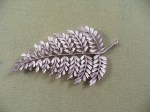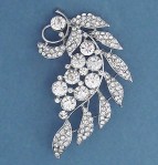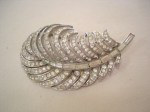 Row 2: signed Trifari rhinestone feather / antique brushed silver leaf / cumulus congestus brooch