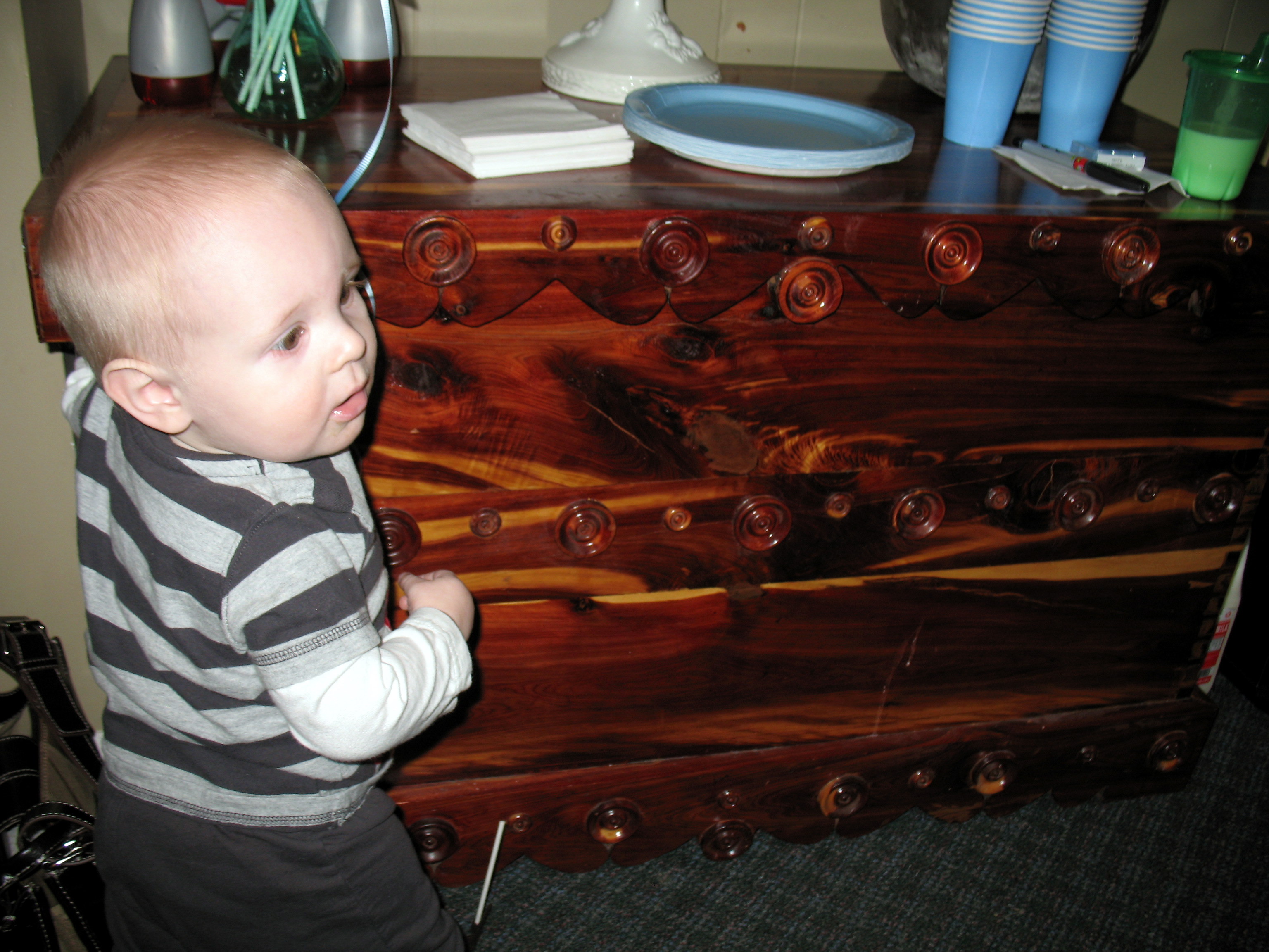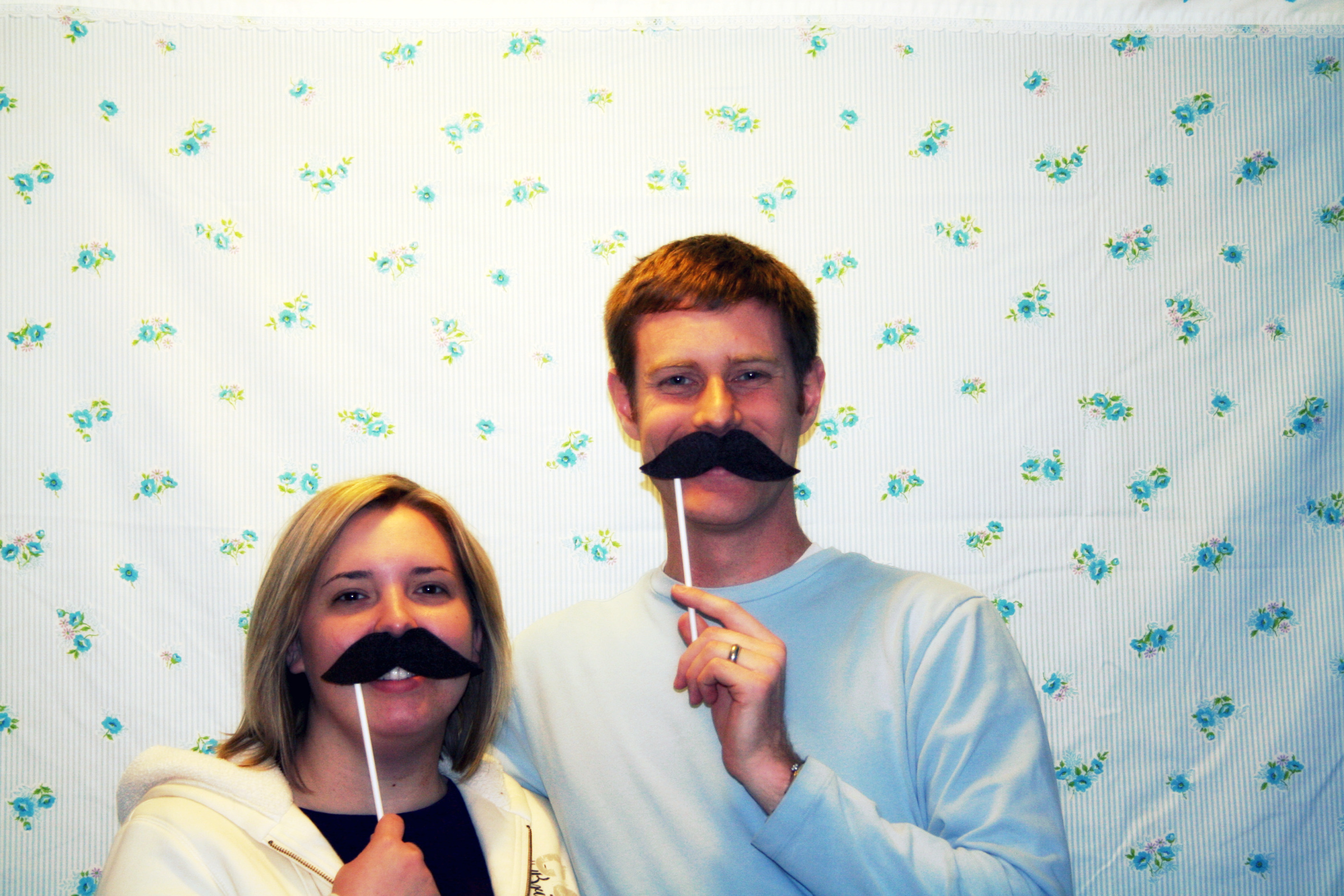 We watched Up, ate cookies, drank milk, and tried to get the Bwun to open presents. I guess he just isn’t old enough to care yet. But he definitely liked the toys once they were opened! It was a lot of fun, not too much work, and a great way to take advantage of the mustache fad. (By the way – did I tell you the whole thing was the Romgi’s idea?)
