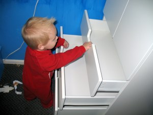The good news (aside from all of us being healthy, and generally happy) is that the Romgi’s grandma very generously purchased a new wardrobe for the kids’ room. It’s from Ikea and it’s perfect. When we moved into this apartment, there were weird homemade drawers in what has become the kids’ room – and not the good kind of homemade. I’ve probably mentioned them before. At any rate, having the new wardrobe means we can get rid of the drawers and free up a lot of floor space. The Romgi very generously donated his time to constructing the wardrobe, and by lunchtime (ok, a late lunchtime) it was ready to be filled.