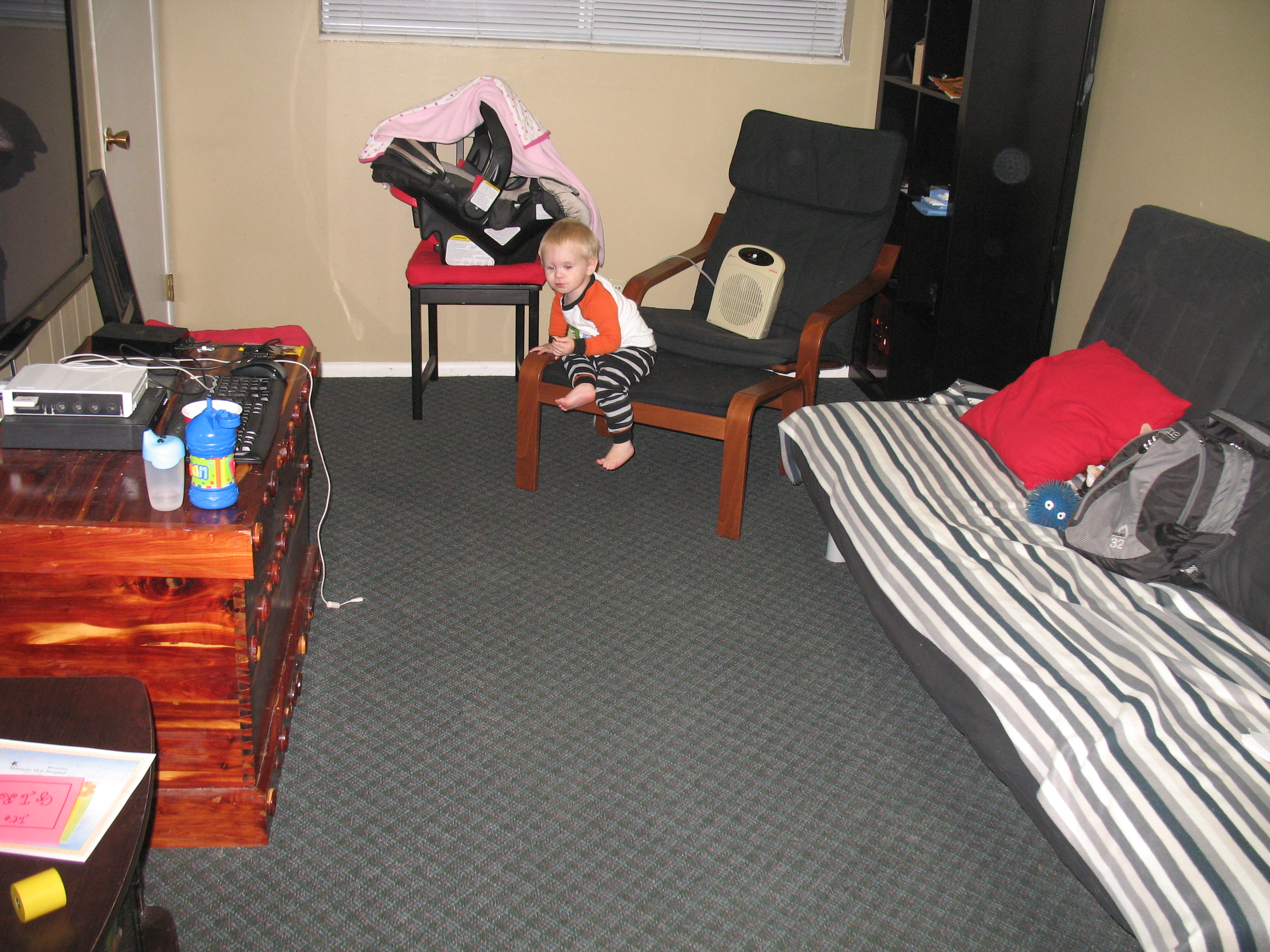 The Bwun did his best to thwart our attempts, but with both the Romgi and I working on the room, we were able to get it fairly clean. Best of all, the Romgi vacuumed while I fed jr.