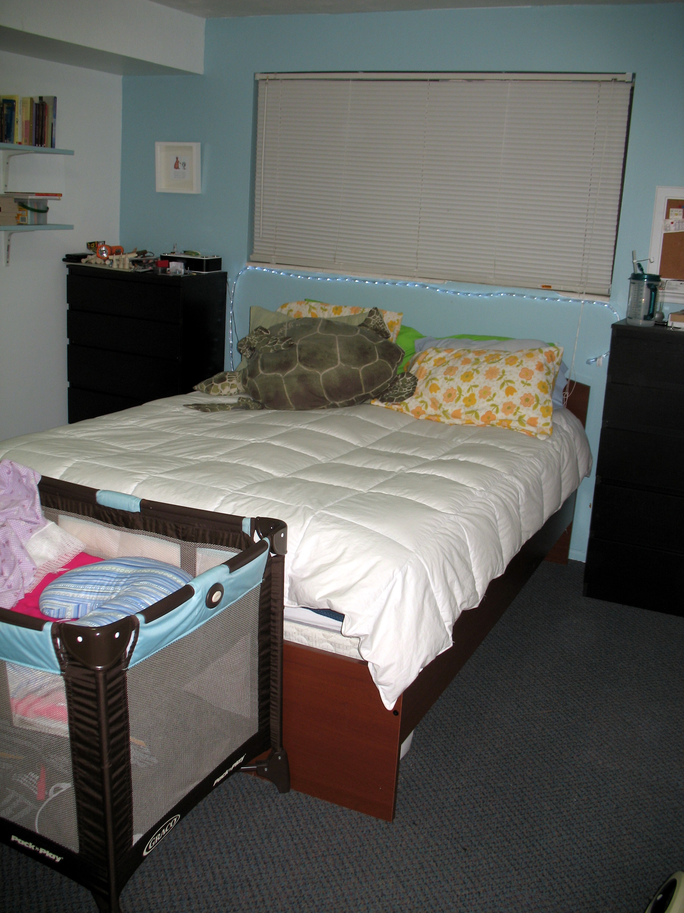Last night the Romgi helped me clean our bedroom. It was a too-overwhelming-to-start situation for me, but we divided things up and got it cleaned after the kids were in bed. (No way can anything be tidy when the Bwun is awake. That kid knows how to make a mess!) Then it just took a quick vacuuming and presto – a clean room! Also, I did 7 loads of laundry and I’ve got easily 5 more to do tomorrow. But hey, we like having clean things.