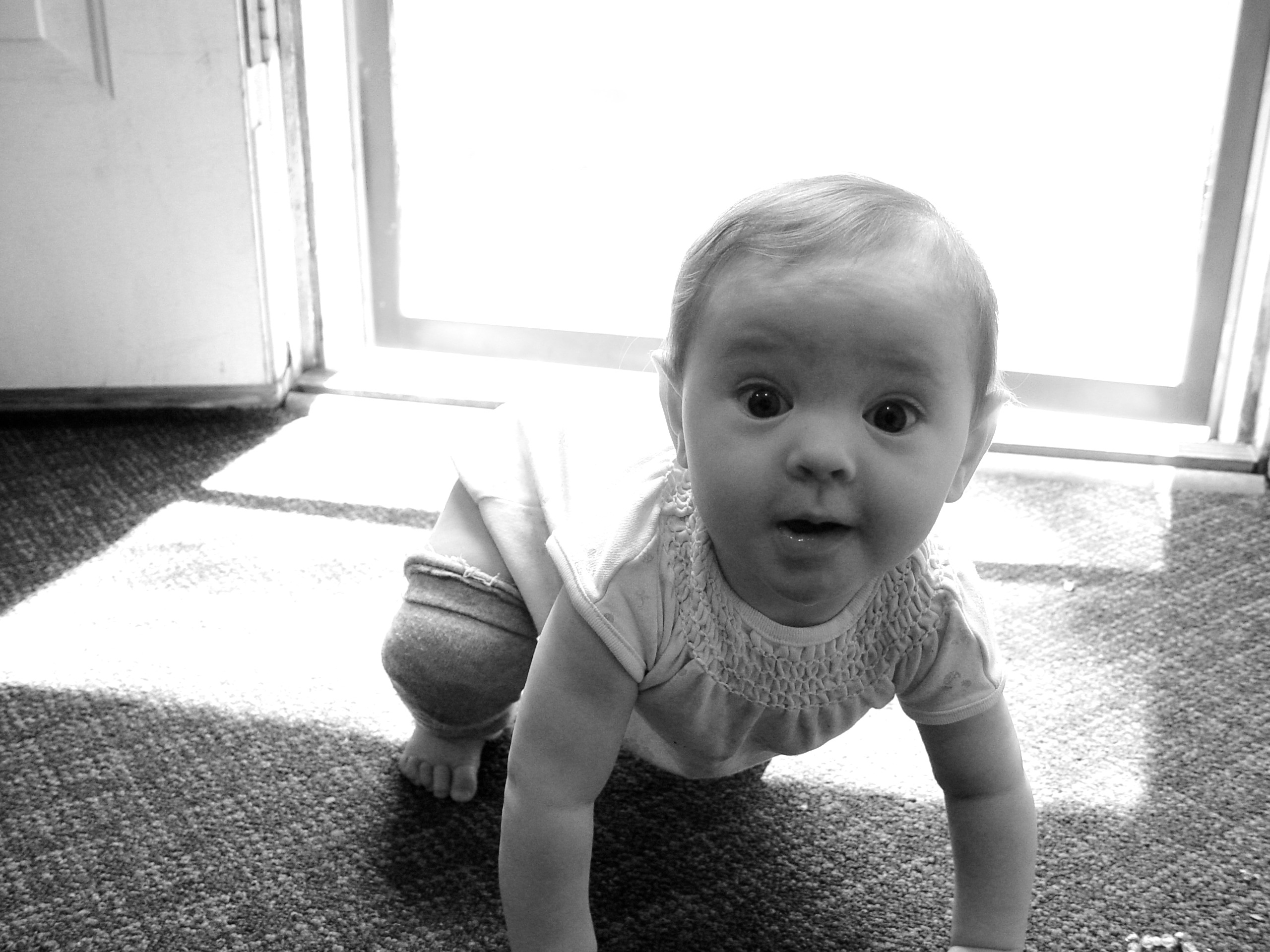 Wait. Yes it was. That’s exactly what it was like. The Romgi either doesn’t mind mornings or is just a very motivated, driven person because he starts work at 7. Yeah, 7 a.m. I will say again, publicly, that I prefer not to be awake before 8:30 at the very, very earliest. But the Romgi wakes up at…who knows when? It’s some ungodly hour, I’m sure. He probably thinks it’s cute to see jr lunging at me while I try to fight her off by rolling over.