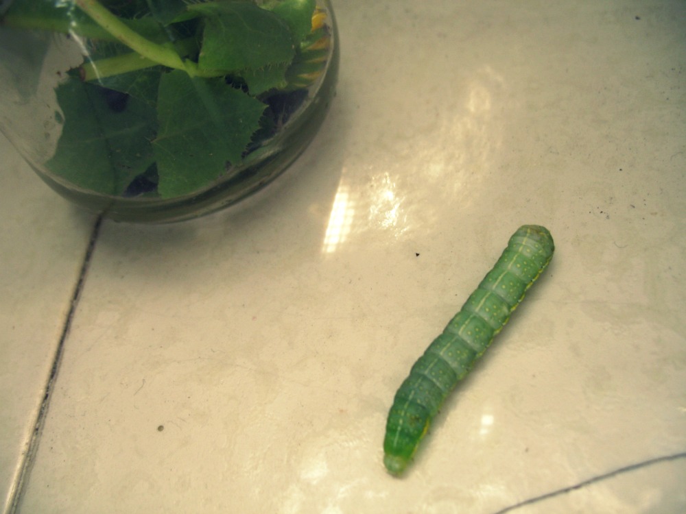 Posted: June 20, 2011 Filed under: Of Mice and Men 1 CommentOur caterpillar is getting so big! I wonder how much more it will grow before he makes a cocoon. The Romgi’s extensive research has led us to believe that our caterpillar will turn into a moth. Not quite as fun as a butterfly, but it’s still exciting! I took a few pictures this morning to show you how much it’s grown.