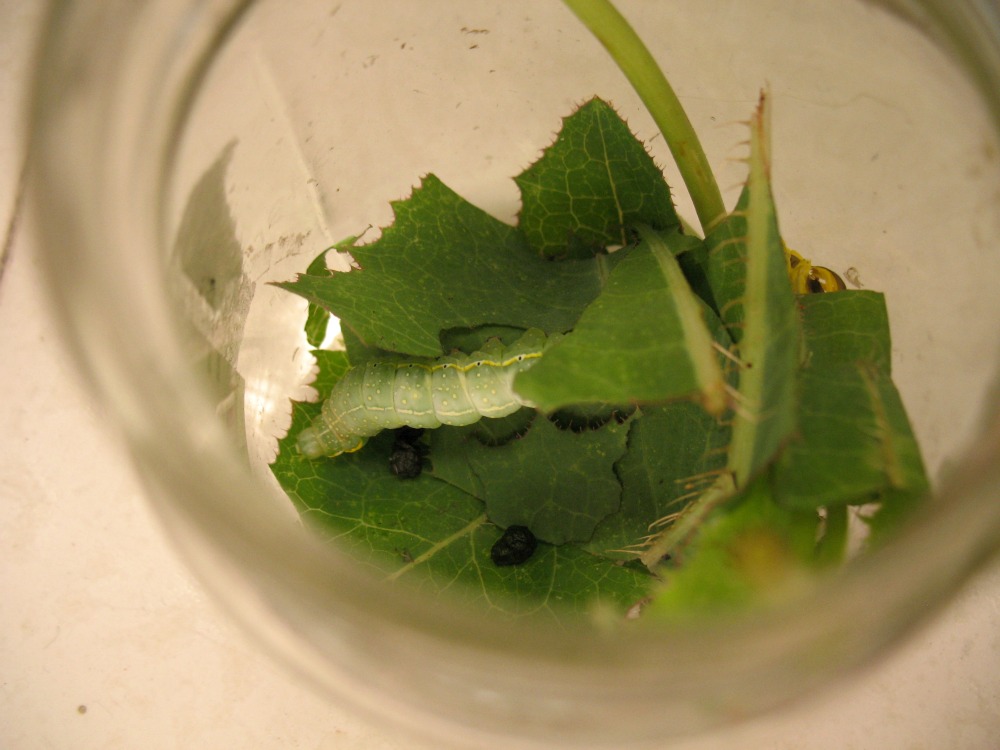 Every day – sometimes twice a day – I give it new leaves (dandelion leaves seem to be a big hit) and clean out the jar. I think I’m having more fun with this than the Bwun is!