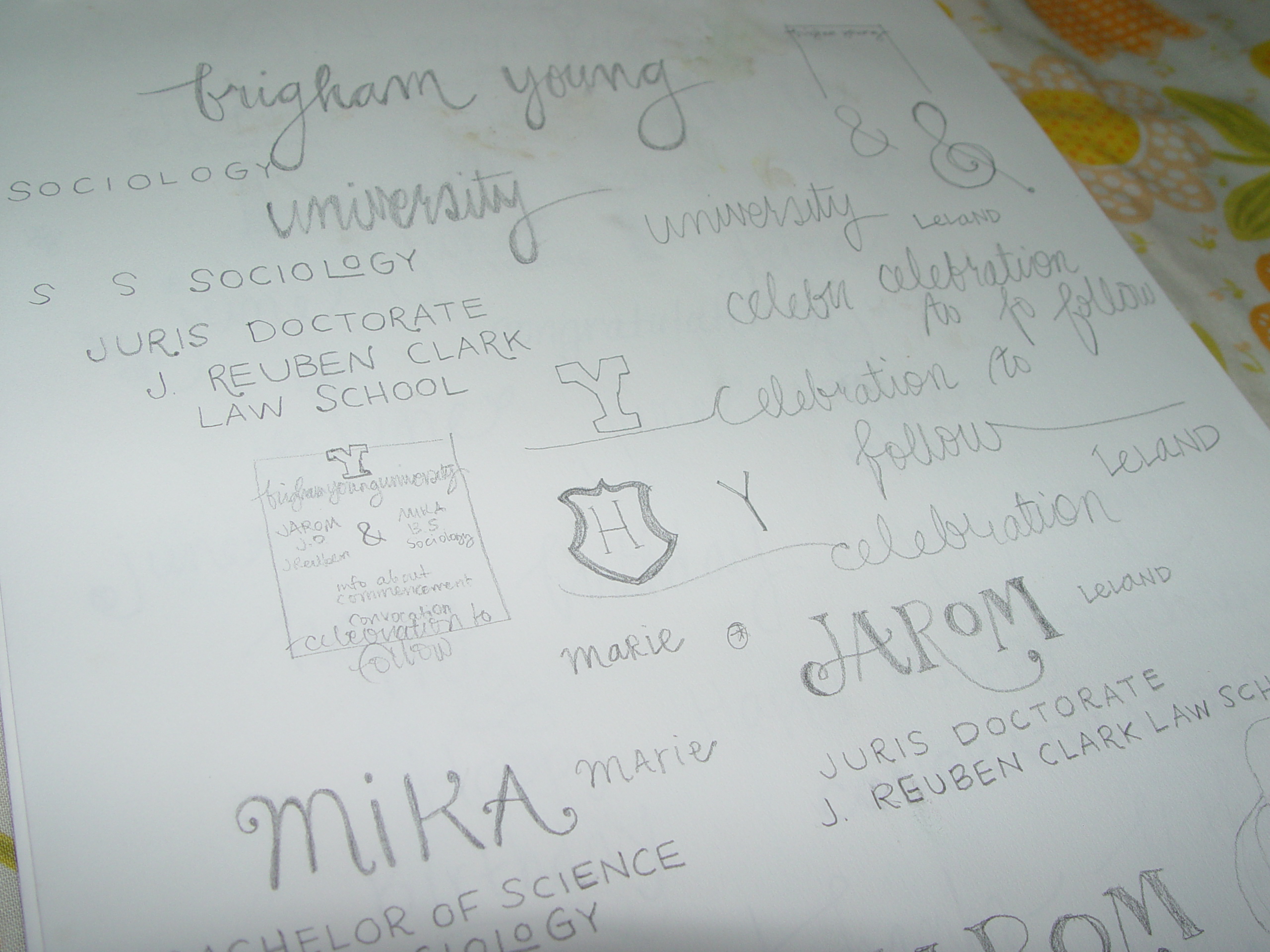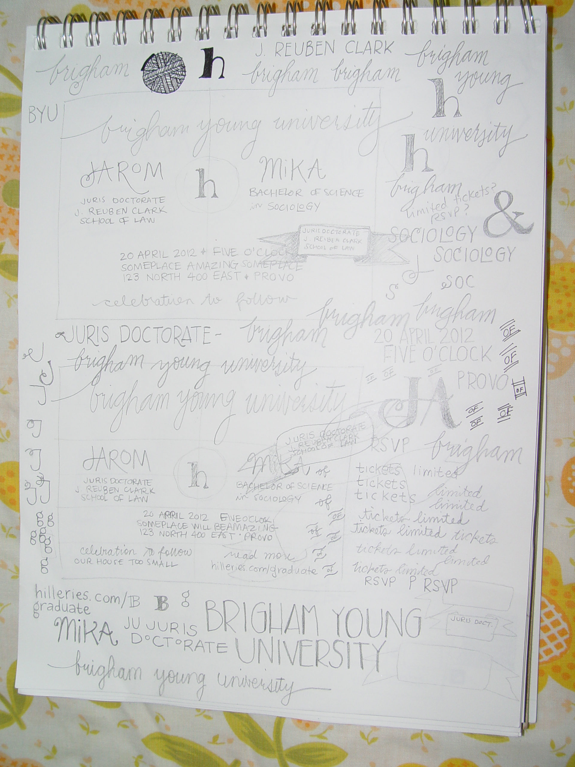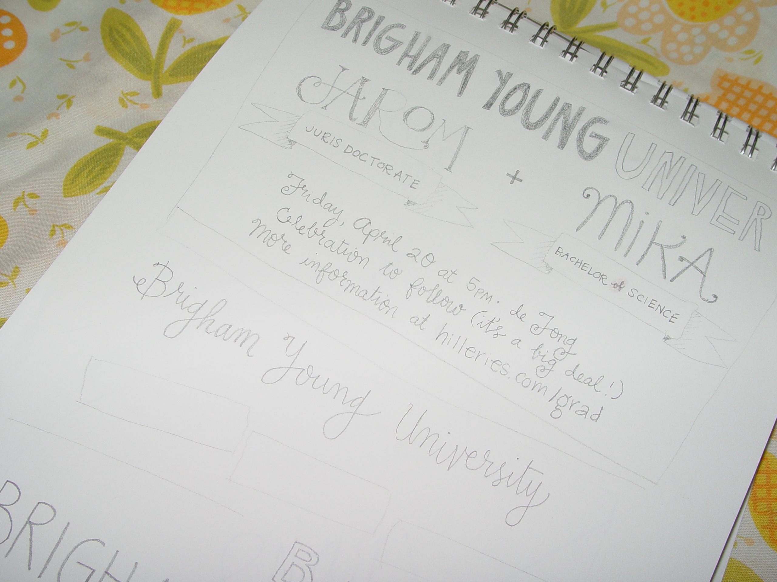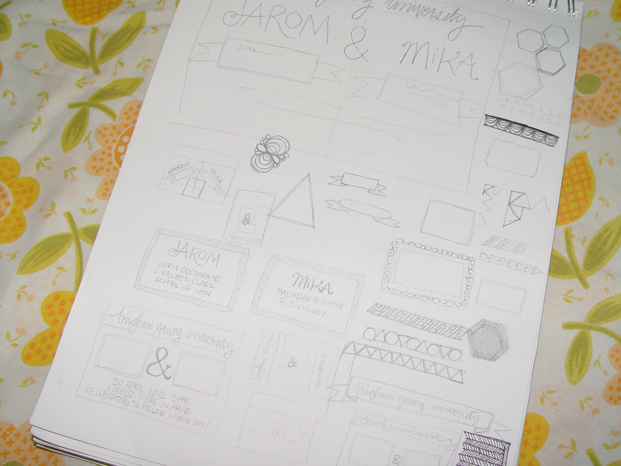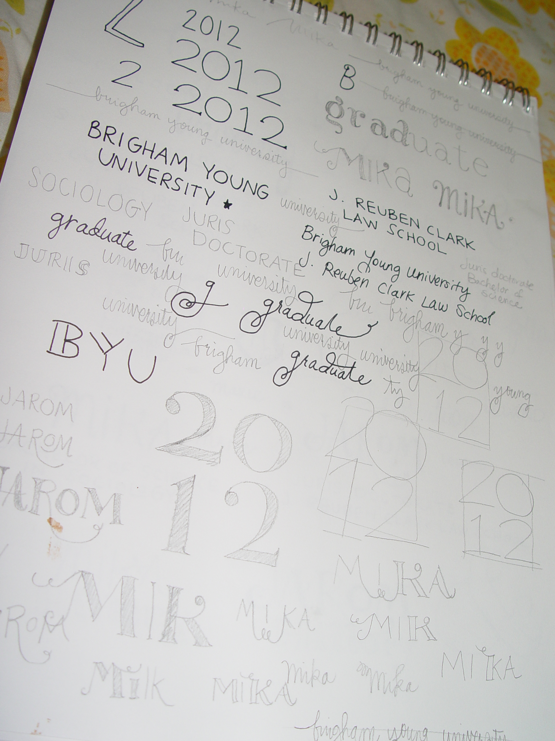 So, as you know, I’ve been working on designing graduation announcements for us. I wanted something that shouted JAROM + MIKA! in a fun way, that people would like receiving. And it’s motivated me to keep working toward finishing my degree. I finalized the design today and once I scan the final version I’ll send it off to the printer – I can’t wait – it’s going to be amazing!!