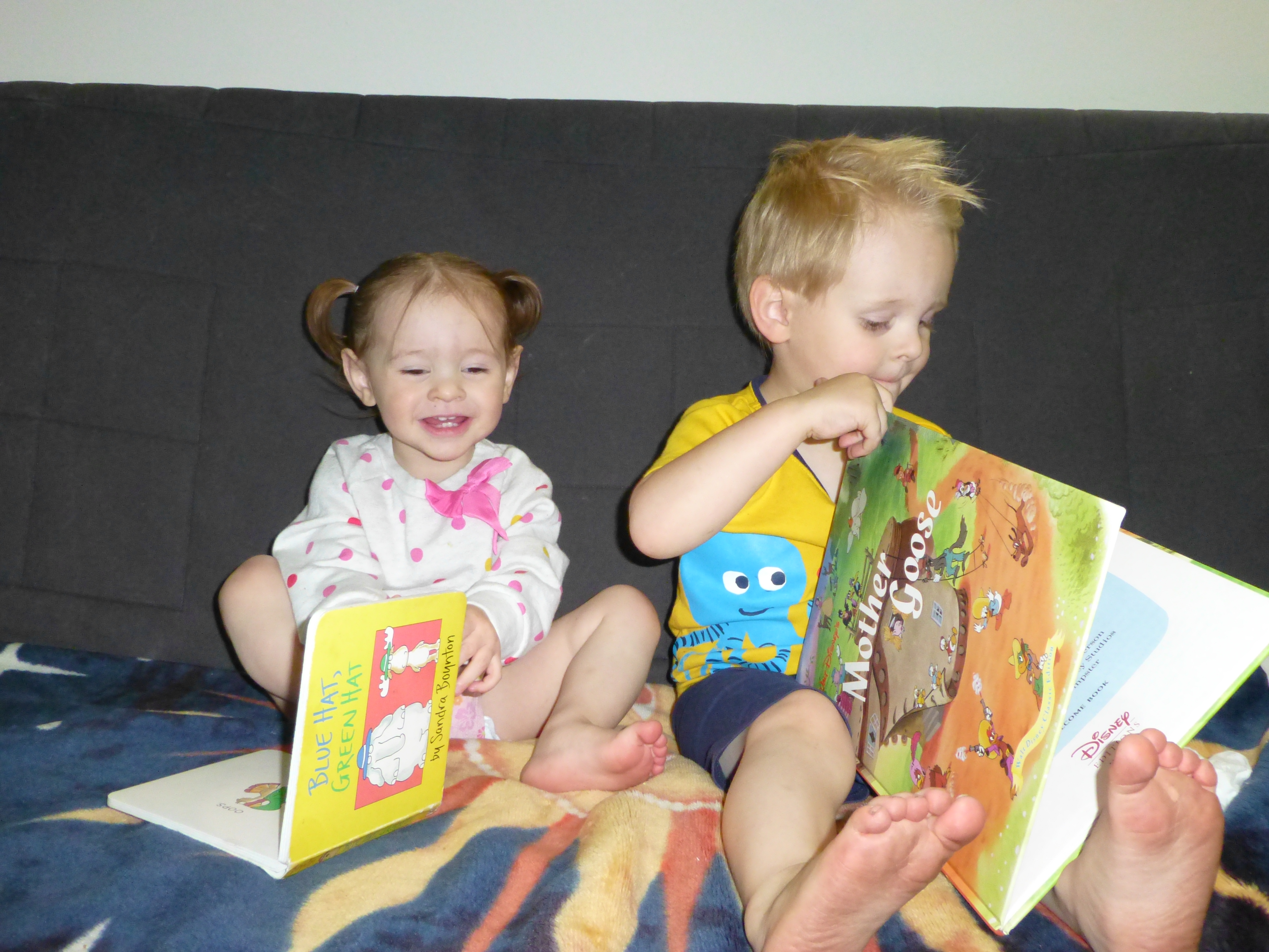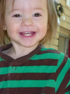 Outside in the morning. Nice pajamas, June. Same ones Evan wore in this video from last year!