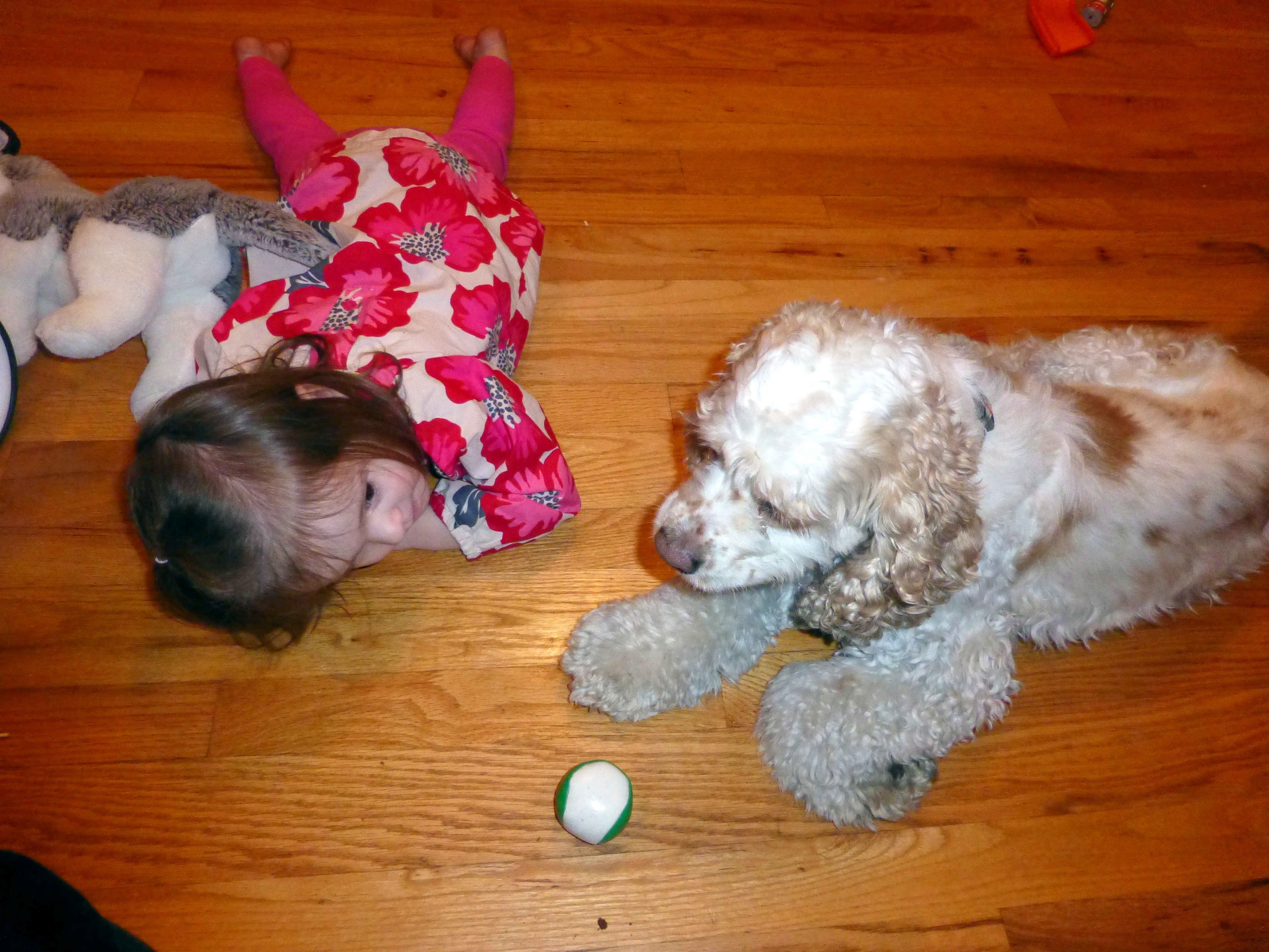 We had them bring the dog over to our house that evening for a visit. It was an extremely shaggy cocker spaniel named The Cheat. By the end of an hour, I was sold; Jarom wisely suggested that I work up to having the dog full-time, so over the next week the dog spent more and more time at our house. Now he’s mine!