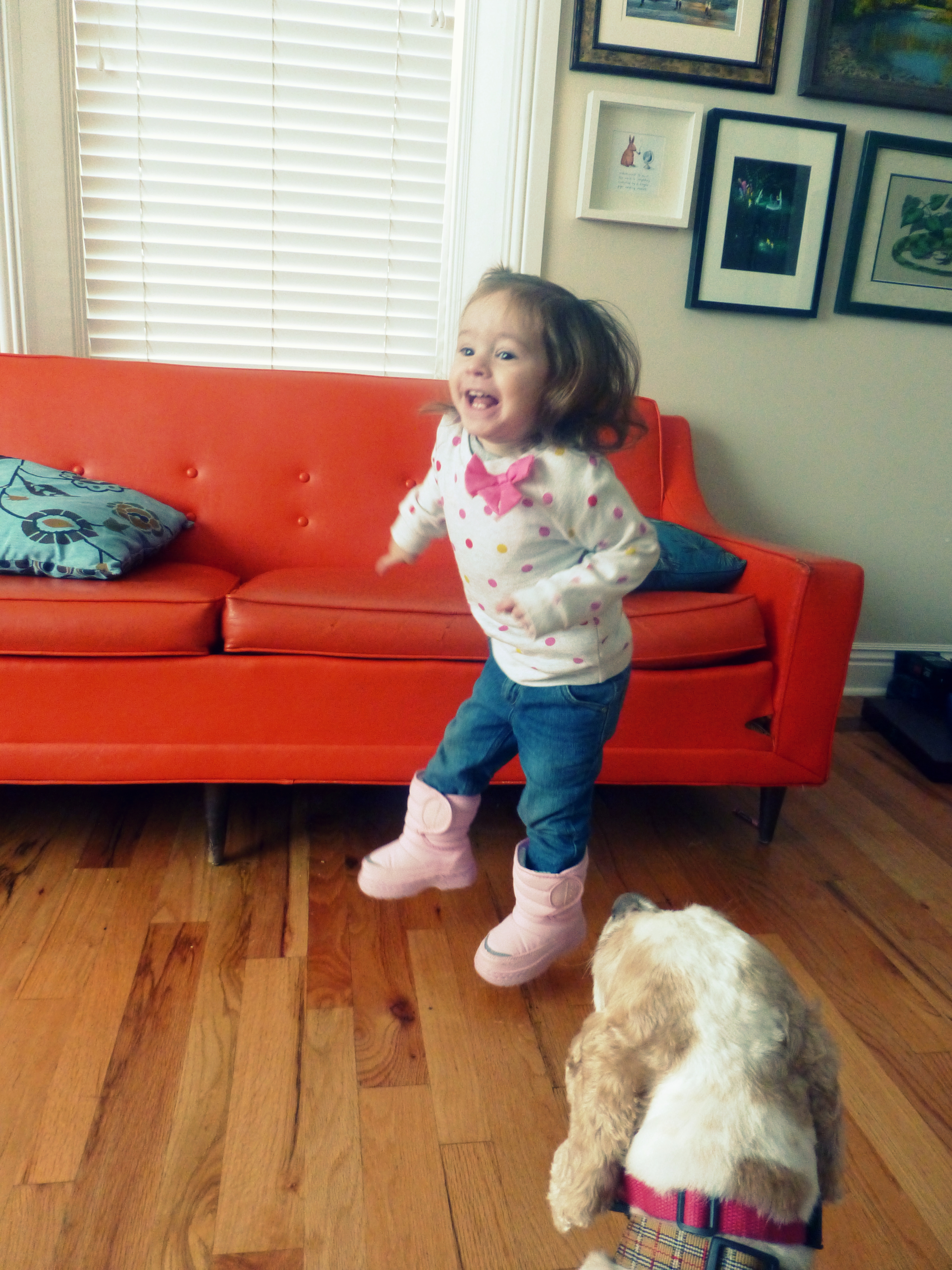 He’s 4, and well-trained, and so far I love having him. The kids adore him, mostly. I did hear Evan say to June recently, “Let’s go sneak up on the dog and chase him!” It might have been innocent, but Evan’s tone indicated otherwise.